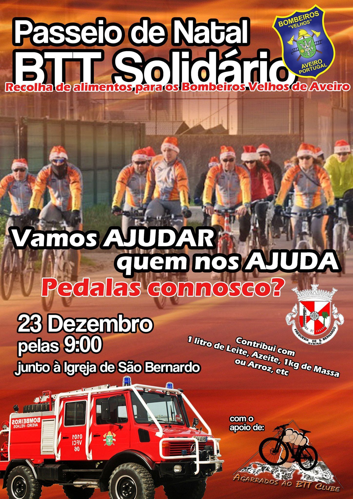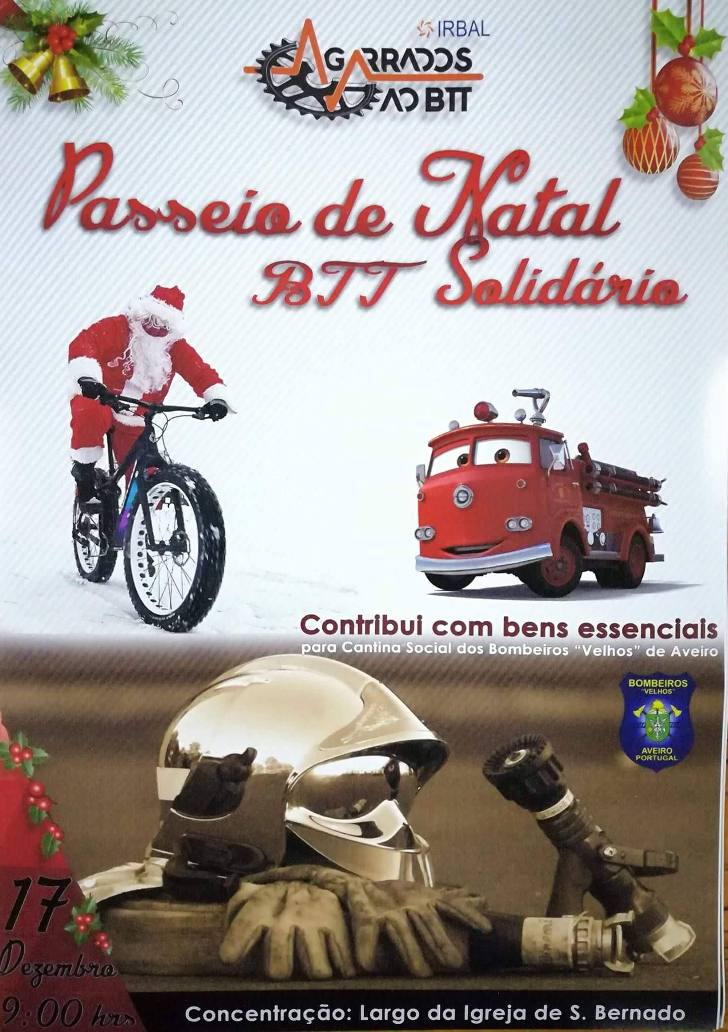 Uma edição mencionada em notícias recentes (sem data específica no snippet) indica que o Agarrados ao BTT/IRBALpromoveu um Passeio de Natal, com partida junto à Igreja de São Bernardo, visando a Angariação de Bens Alimentares para os Bombeiros Voluntários de Aveiro (os "Bombeiros Velhos").